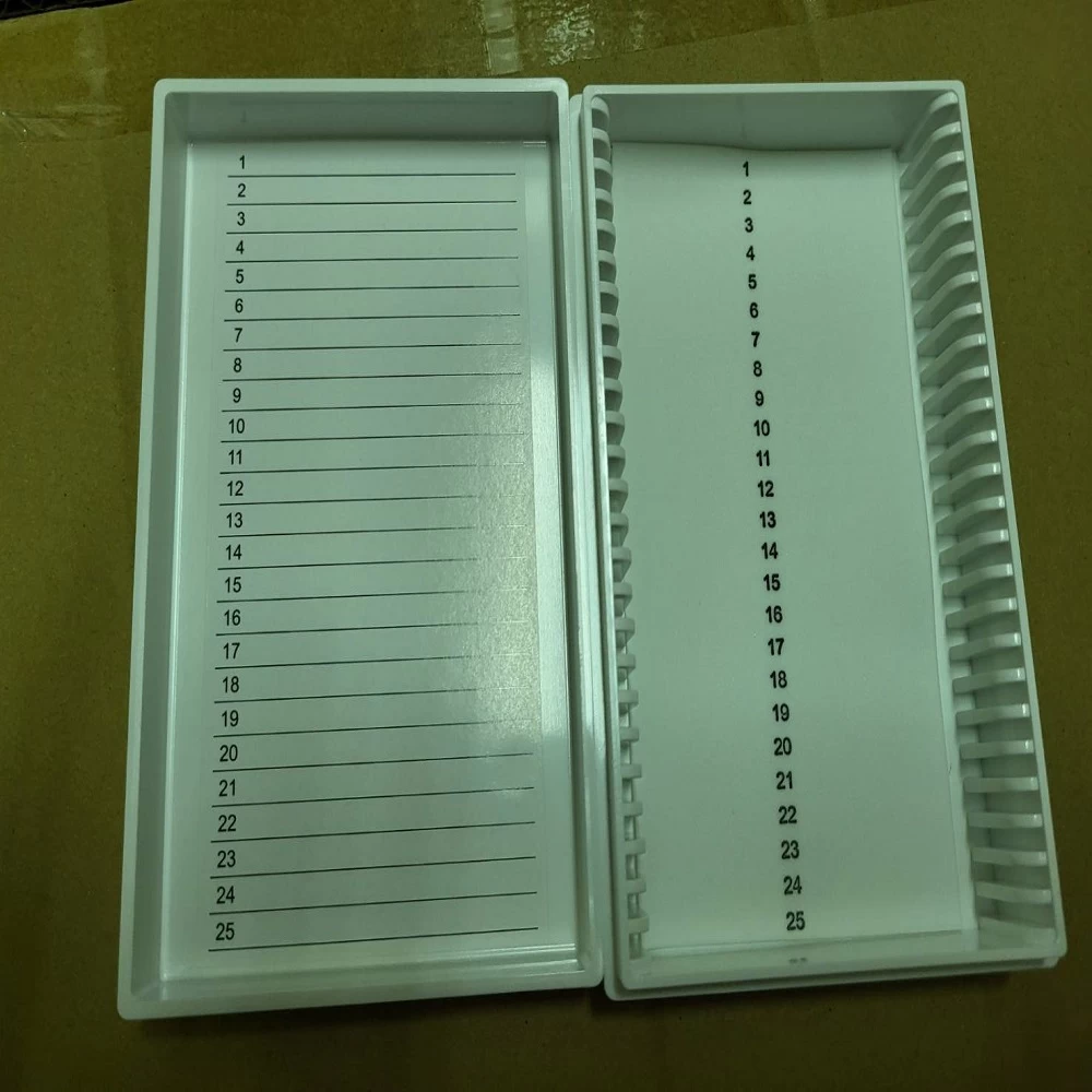 The slide box provides a safe transport space for slides. Each groove holds one slide. It is specially designed for cell research samples.